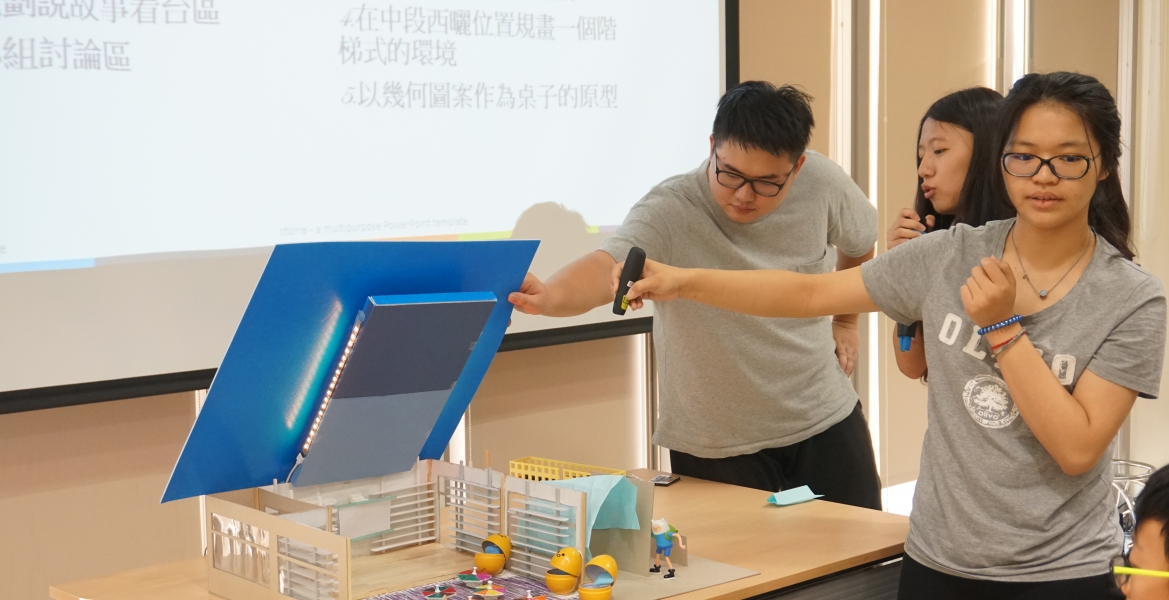 課程中,透過不同學院學生的合作,共產出三組作品:「森寧」,主要是讓小朋友了解進到這個圖書館必須保持寧靜,維護場合原有的氛圍,避免打擾在閱讀的同學,也希望可以讓小朋友提高學習能力和記憶力,因此“森寧”可以把象征許多未知的豐富環境—森林,帶給小朋友探索這個豐富的圖書館。第二組作品為「森林裡的動物派對」,藉由創造一個具備主題性的森林系圖書館,讓每位來閱讀的小朋友彷彿成為自然界的動物,由櫃檯的愛心媽媽作為派對的入場接待員,引領小朋友們進入一個如大自然般輕鬆愉悅的閱讀場所。圖書館內,有針對各年齡層的小朋友設計不同的閱讀空間,如:給低年級學生席地而坐的草原區;或是給中高年級的學生規劃一區私人討論的半圓形沙發空間,其中更是設有將三角形桌子拼接成五角形的討論式圓桌設計,其設計也能拆開變成單獨式的閱讀桌。另一組作品為「前進未來世界」,整個圖書館色系以科技感的銀白色作為主色調,圖書館配置最大的重點為藏書量,所以設置許多書櫃。中段的圓形看台則是老師說故事的地方,而看臺旁的小組討論區桌子會以幾何圖形及三角形為主,其原因為幾何圖形桌子可以自由拼湊成老師需要的人數。